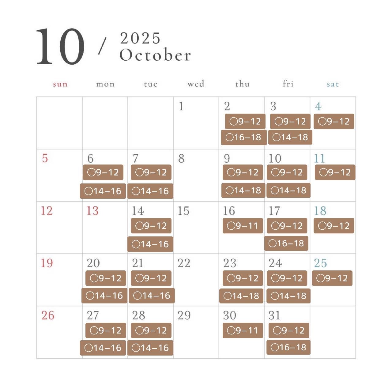 10月美容診療カレンダー